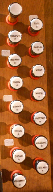 L'orgue de 1865 n'avait pas de Récit expressif, le clavier de Bombarde partageant le même sommier que celui du Grand-Orgue.