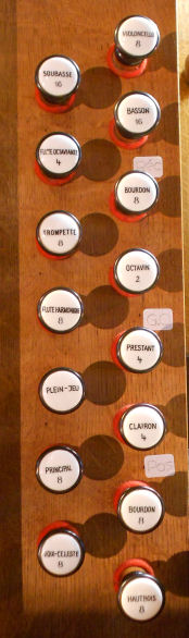 Les claviers de Grand-Orgue et de Bombarde partagent le même sommier. Celui-ci est diatonique, les aigües étant au centre.
