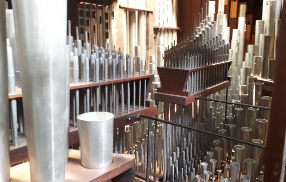 Au fond : les tuyaux en bois de la sousbasse de 16.