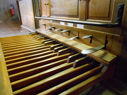 Le pédalier de 30 notes et les cuillères des accouplements et des tirasses.