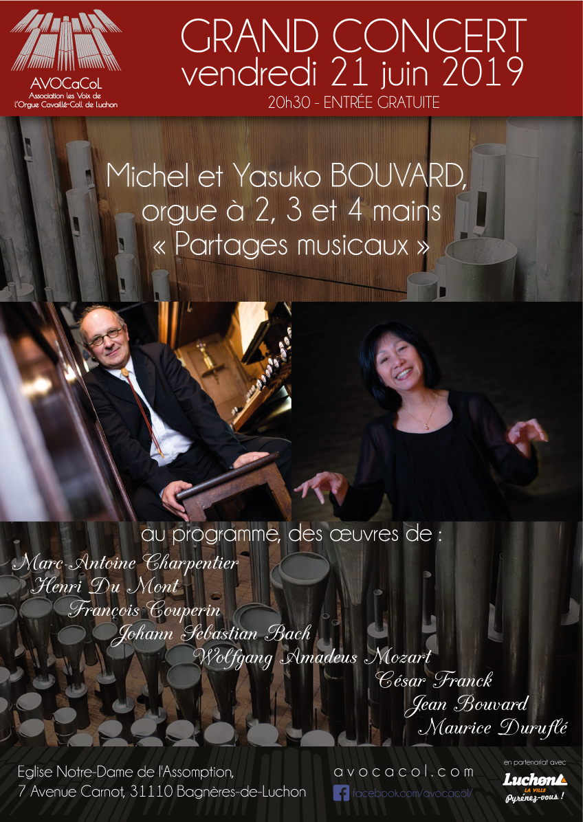 Michel et Yasuko BOUVARD | Second volet : Grand Concert "Partages musicaux à 2, 3 et 4 mains" Œuvres de Bach, Mozart, Franck, Vierne et Bouvard |