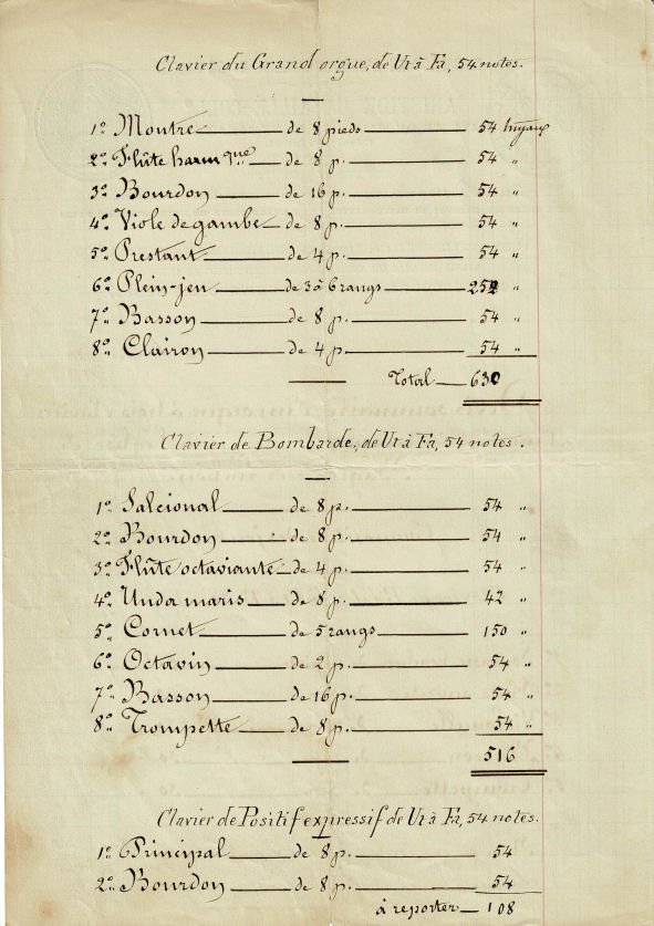 On a successivement comparé toutes les parties de l'orgue aux conditions indiquées dans le devis.