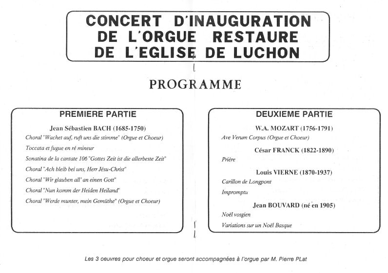 Le second volet a été un Grand Concert organisé par l'Association les Voix de l'Orgue Cavaillé-Coll de Luchon, (AVOCaCoL),